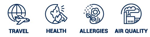 Sensitivity to pollen is nothing unusual, but it can be a real inconvenience. Using a mask to protect against pollen helps. The most common pollen particles are between 20-35 microns. Wearing a Pacsafe face mask is a great way to avoid pollen and other allergens from being inhaled.