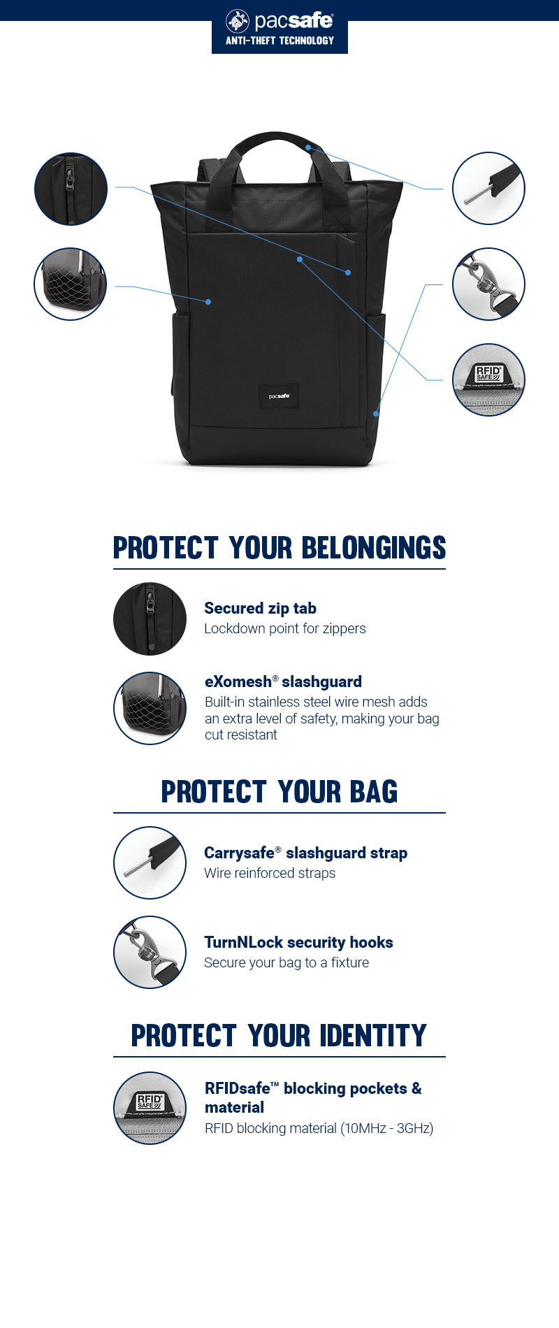 Check the sizingThis versatile totepack allows you to switch effortlessly from a tote bag to a backpack. Designed with a padded laptop compartment, a handy luggage slip, two side pockets for your water bottle and umbrella, and a front stash compartment for quick access to your essentials. The totepack is equipped with user-friendly anti-theft features, ensuring your gear stays secure, all while giving you a clear path to wherever you're headed.