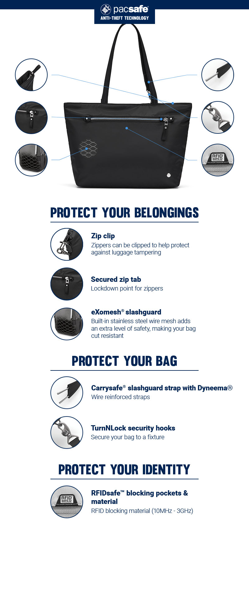 Check the sizingThis spacious tote offers a refined, minimalist style, perfect for travel, work, or any situation requiring ample storage. Featuring a padded laptop compartment for secure tech storage, a luggage slip for easy transport, a front compartment for quick access, a spacious zippered RFID blocking pocket, various organizational pockets for your phone, pens, portable charger, and more. Discreet anti-theft features are integrated into the tote to provide you with peace of mind.