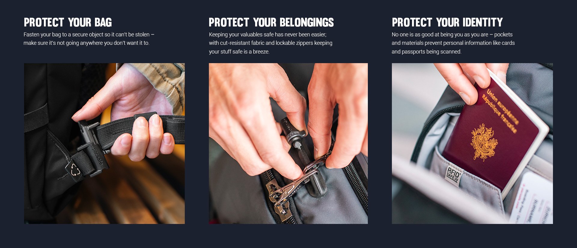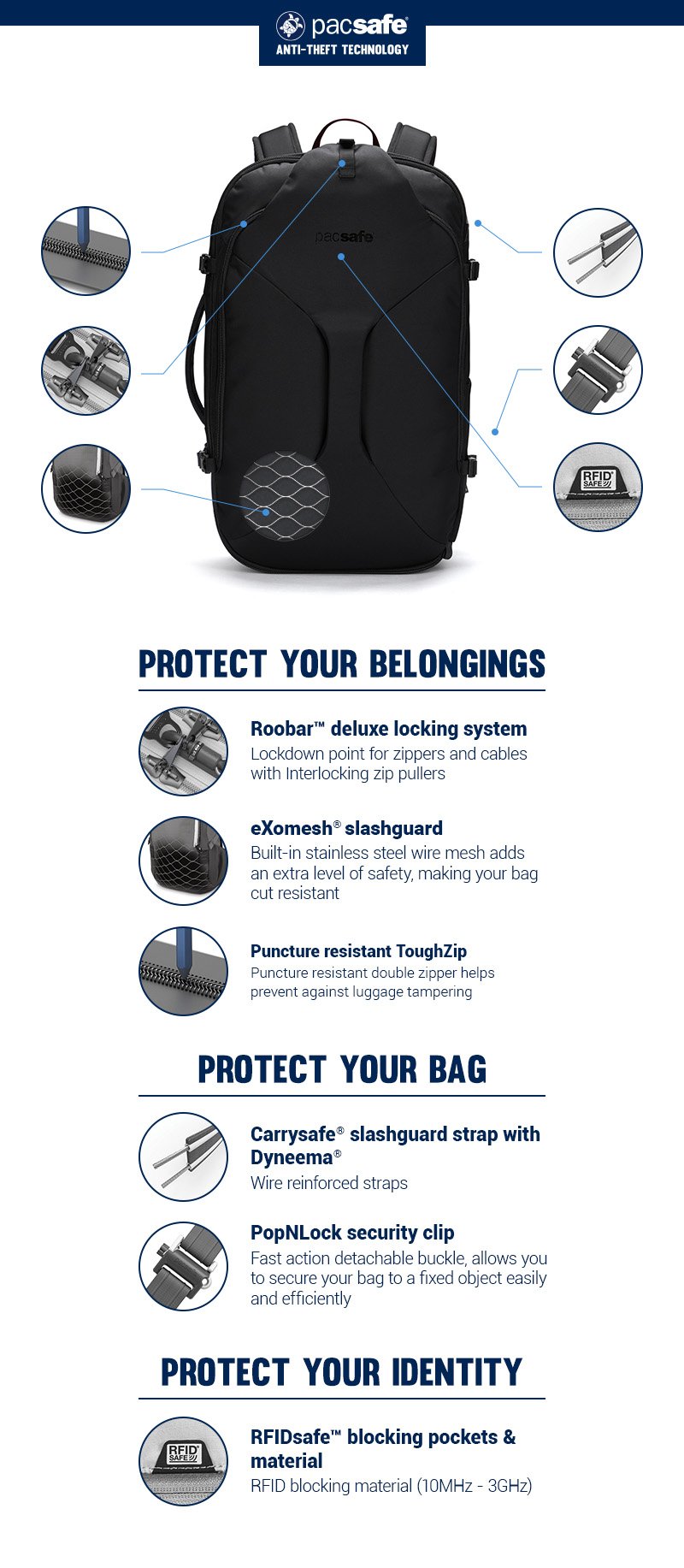 I like this bag. Well organized. Perfect for a couple of days or a week. I definitely like the materials. Very durable. I like the big open center space and tiedown straps. If I could improve one thing, I might have one external zipper pocket on the front of the bag. I understand this would conflict with the safety aspects that you tout.